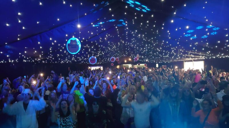 Having some sort of public event sharing the archived material was always part of the plan, but we wanted to do it in the right way. There were two approaches available to us. The first was to do a ‘proper’ exhibition, in one of the libraries or a similar sort of space. I think this was popular for some as the format and institutional setting elevated the Quad and legitimised it as a significant cultural moment. The second approach was to try to do something more embedded in the Bootle community. Like lots of things in this project, the answer came organically via conversations and connections within the local community itself. Over the road from Bootle Library is a shopping centre called The Strand. It is, like lots of these place, quite empty and past it’s best. To one side there is a big, open car park that has been converted into a community event space, with a boxpark selling food and drink alongside places to sit, watch, drink and eat. They have big concerts each year, featuring people like Tom Jones and the Sugababes. It is funded by the local authority via government levelling up grants. In May of 2025 they were hosting a Fringe Festival and during a conversation about the project, it was floated that we might be able to work together to be part of it. We thought it would be great to bring the project back to Bootle, and exhibit some of the archive on site. As the venue also had a 600 capacity tent for the festival, we also worked with the original DJ’s who put on a Quadrant Park ‘Back to Bootle’ night, celebrating 35 years since the club really took off. So, on the Saturday of the late May bank holiday weekend we invited the public to the site to see some of the archival material, to be followed by a rave in the tent later.